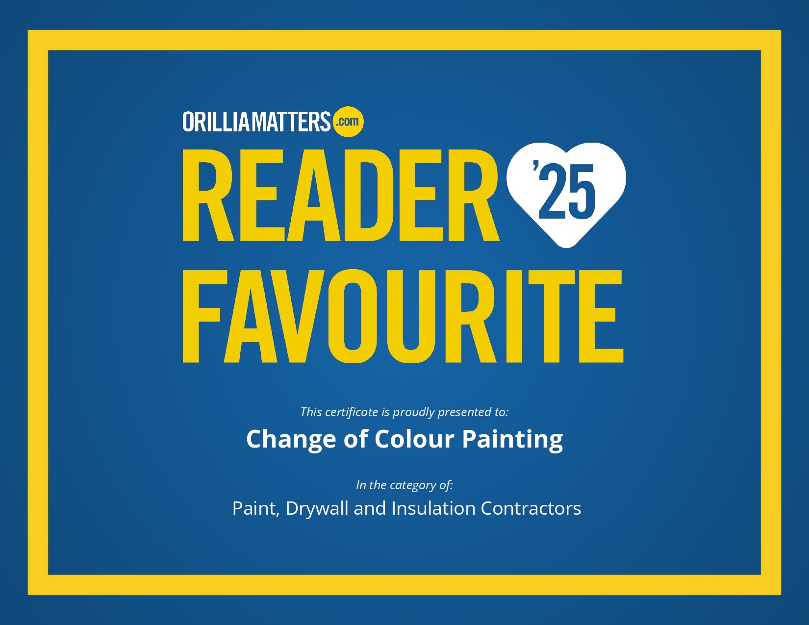 Change of Colour is considered as a highly qualified painter team in Orillia and nearby areas. Just look at our reviews to see why, when you search painter Orillia, we are in 3 pack ranking of Google Maps list. Our painting company can bring your home, office, or commercial building to life with paint.